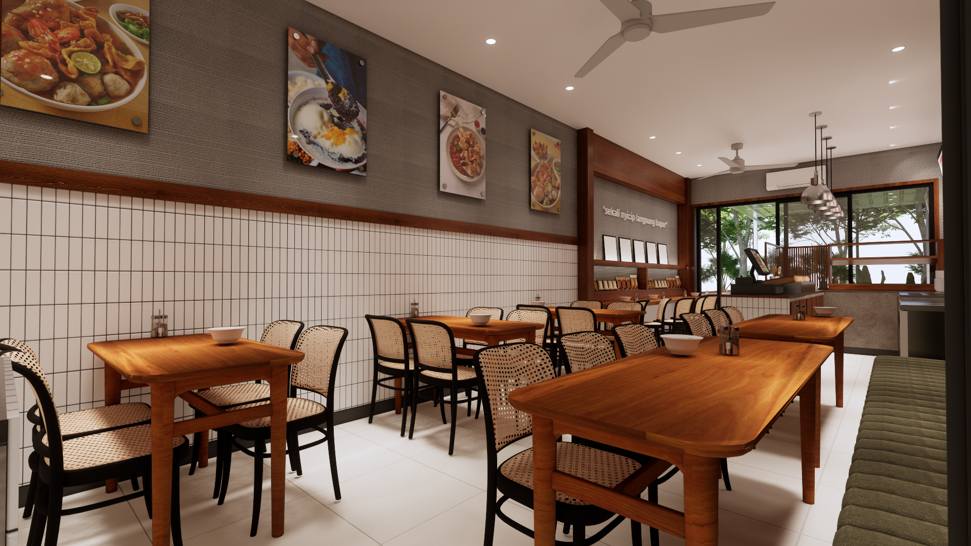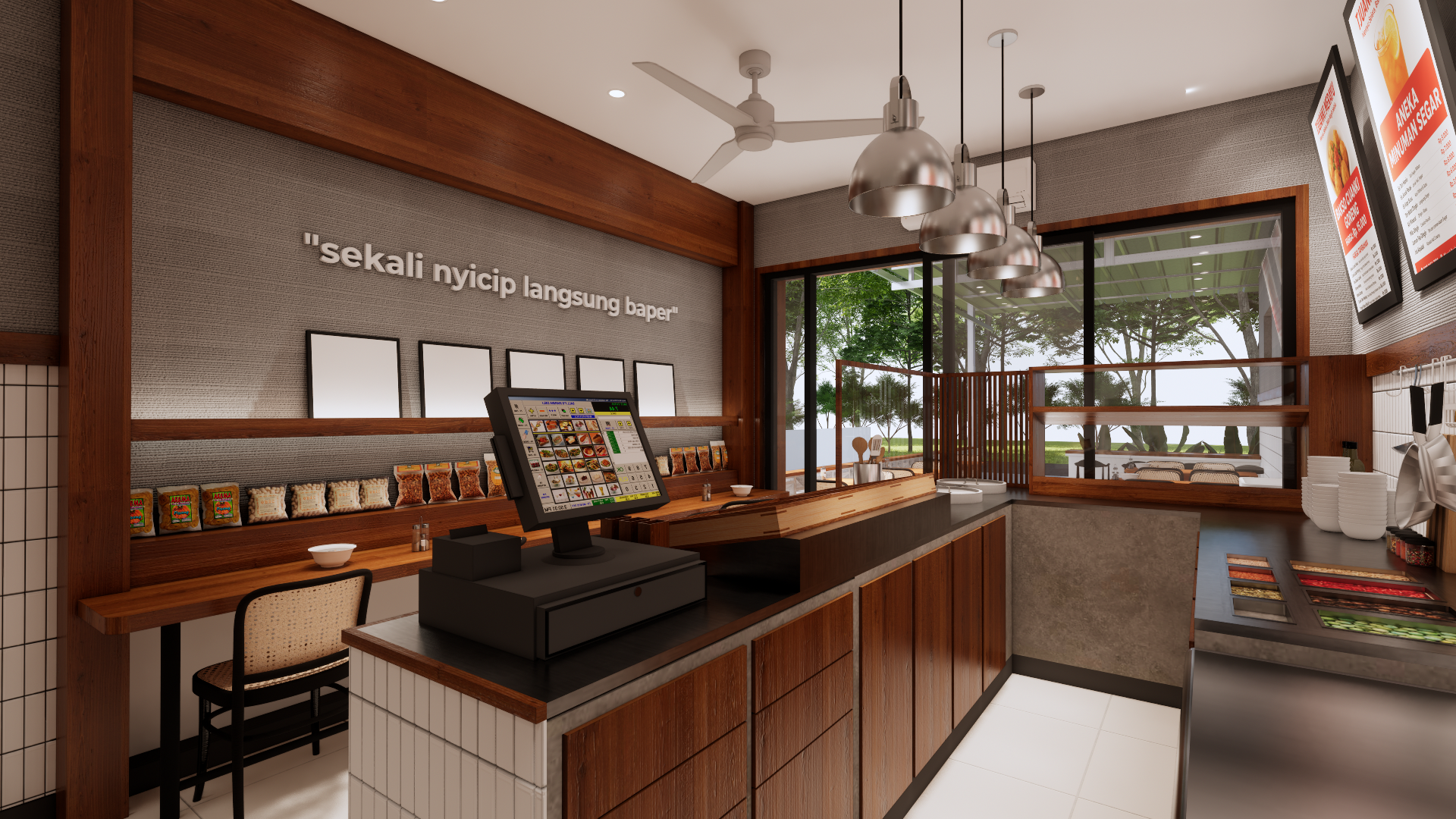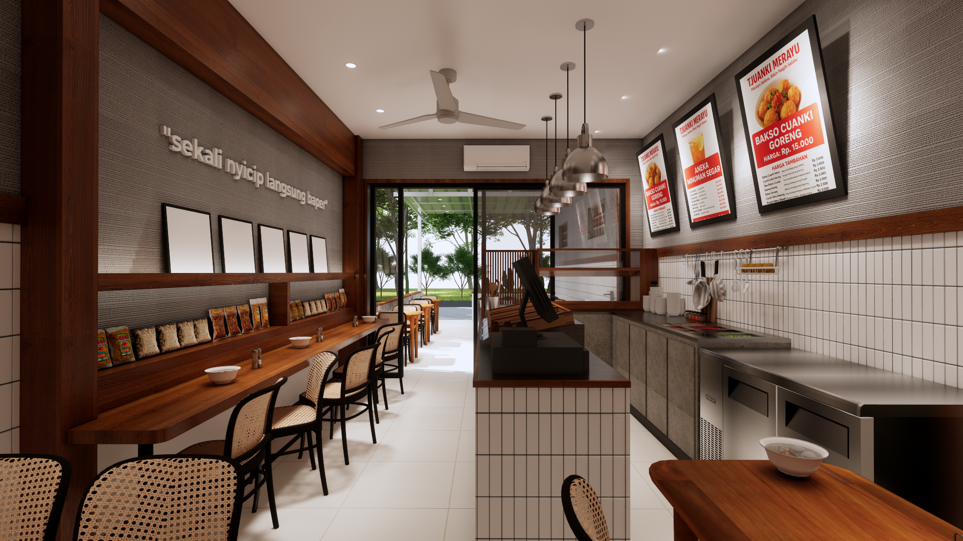 Tjuankie Merayu is a modern project designed with a warm and comfortable feel. We use soft shapes, good lighting, and simple materials to create a space that looks clean, cozy, and welcoming. The design still keeps a touch of Palembang’s local character, making the place unique but easy to enjoy.